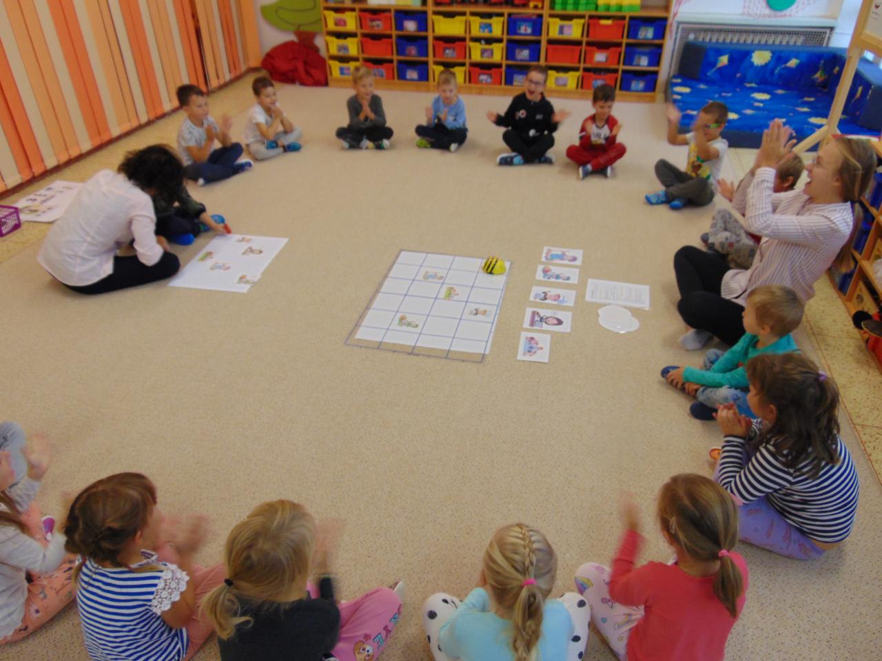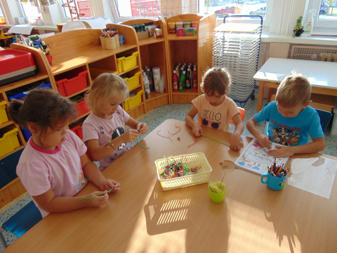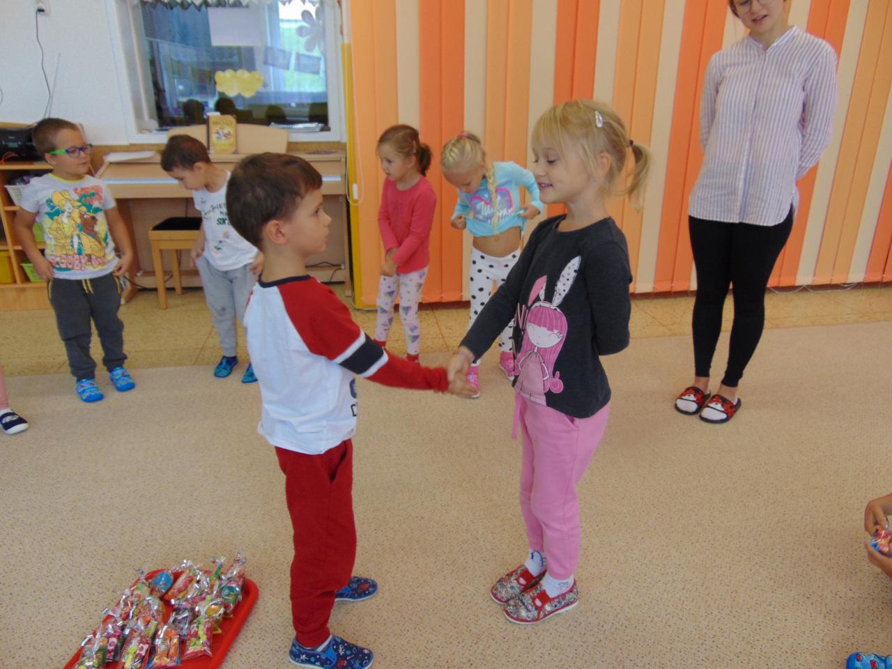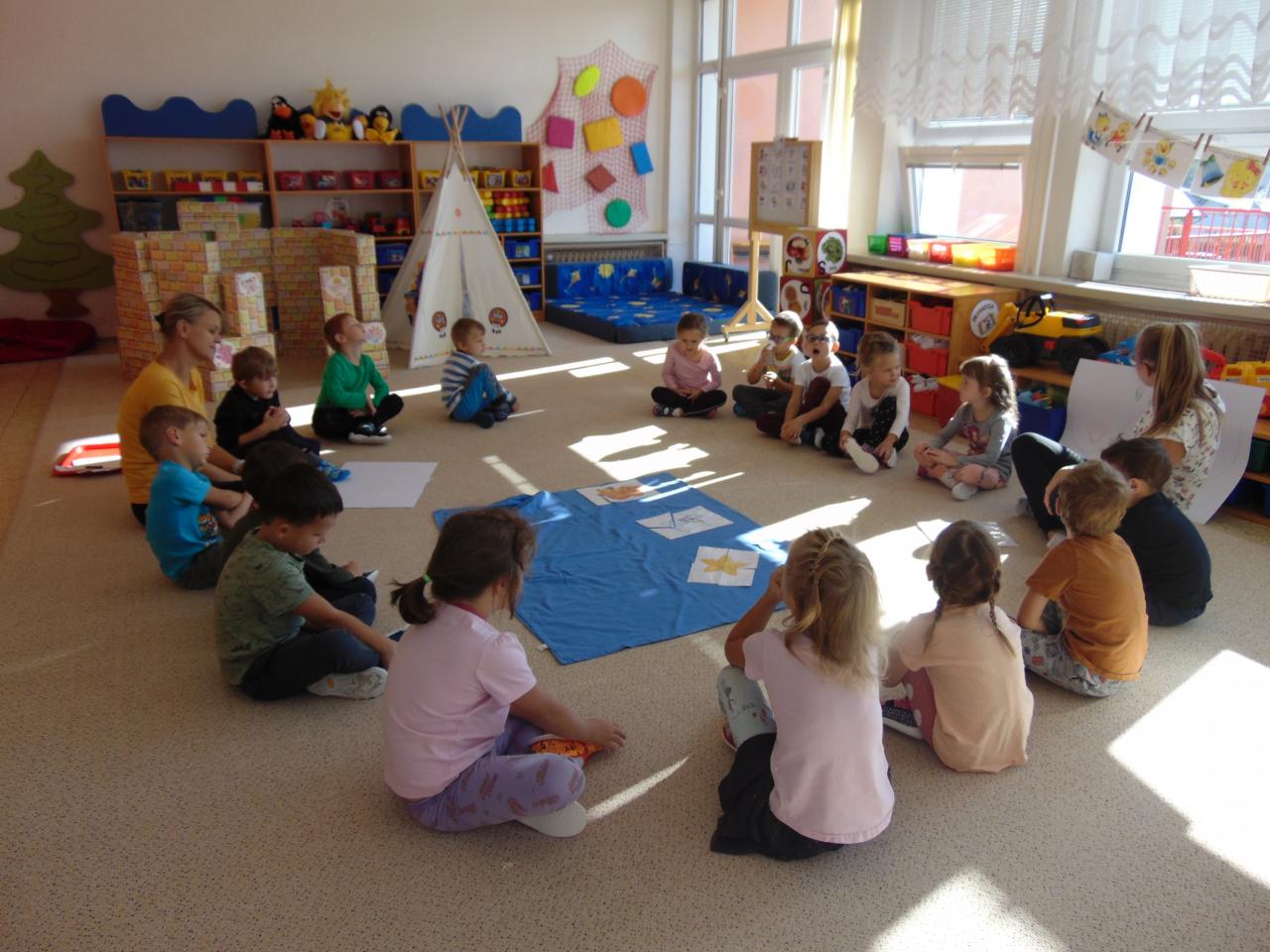 Naše školka kouzelná je, každý si v ní moc rád hraje. Dovádíme, lumpačíme, nikdy se však nemračíme.
