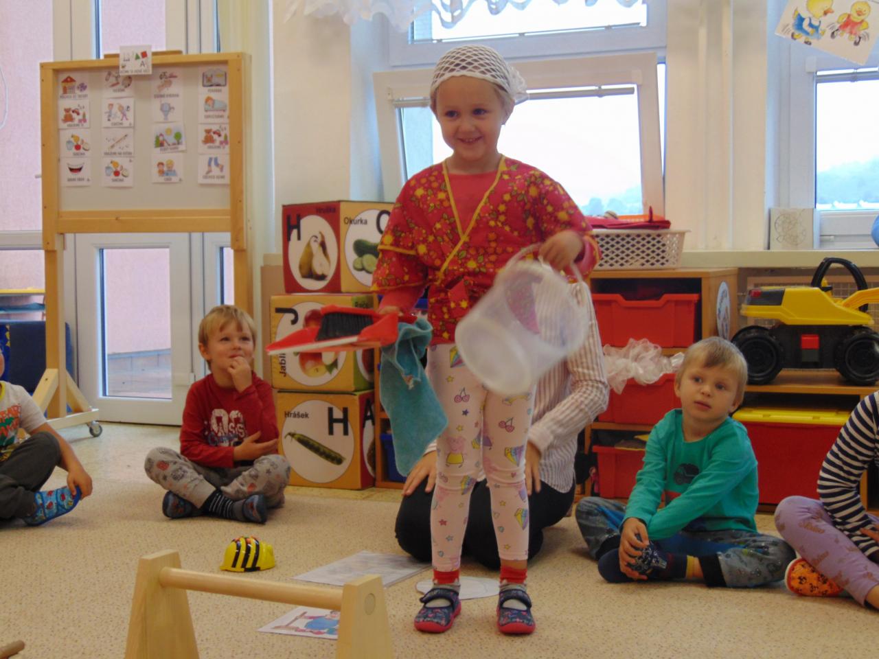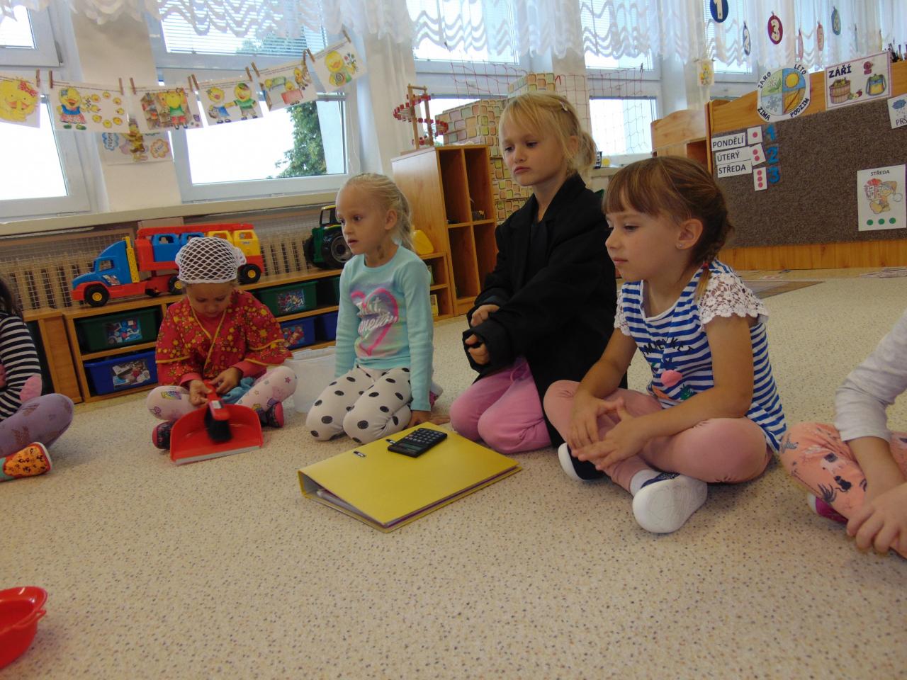 Tento týden se nesl v duchu poznávání naší škiolky. Kuřátka si nejen připomněla, kdo všechno pracuje v naší školce. Dokonce i zjistila jakou profesi vykonávají jejich rodiče a nakonec jsme se všichni zamysleli nad tím, jak se vlastně do té naší školky dostaneme.