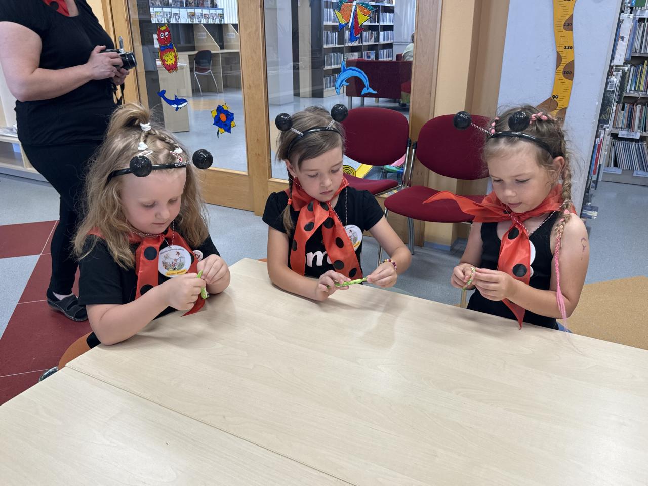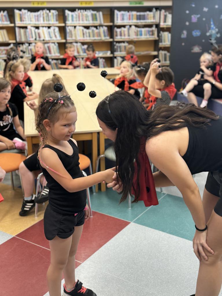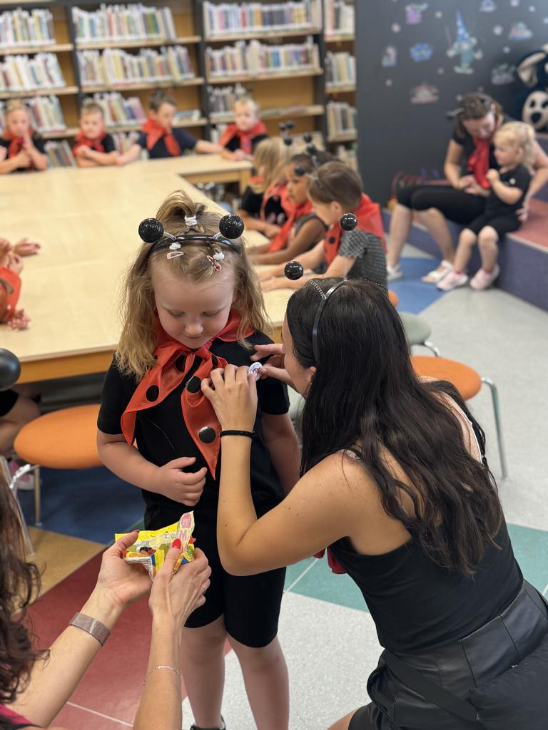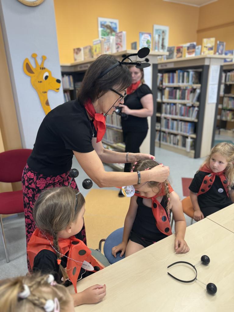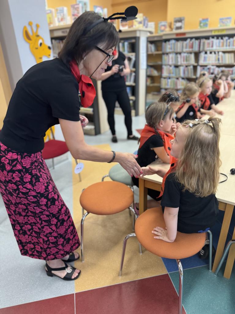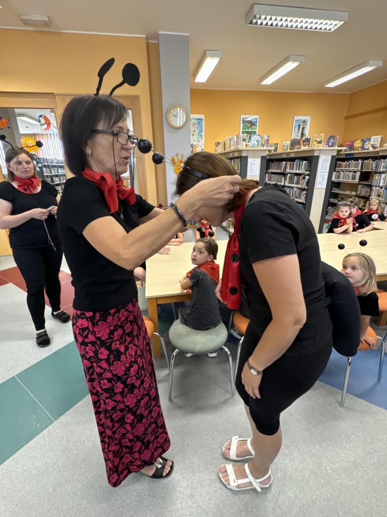 Ukončení projektu v knihovně. Z Kuřátek se stali mravenečci, kteří po celý školní rok plnili nelehké úkoly. Celý rok nás společně provázel Ferda mravenec a jeho kamarádi. A teď si můžeme užít celoroční výstavu dětských prací v knihovně VK.