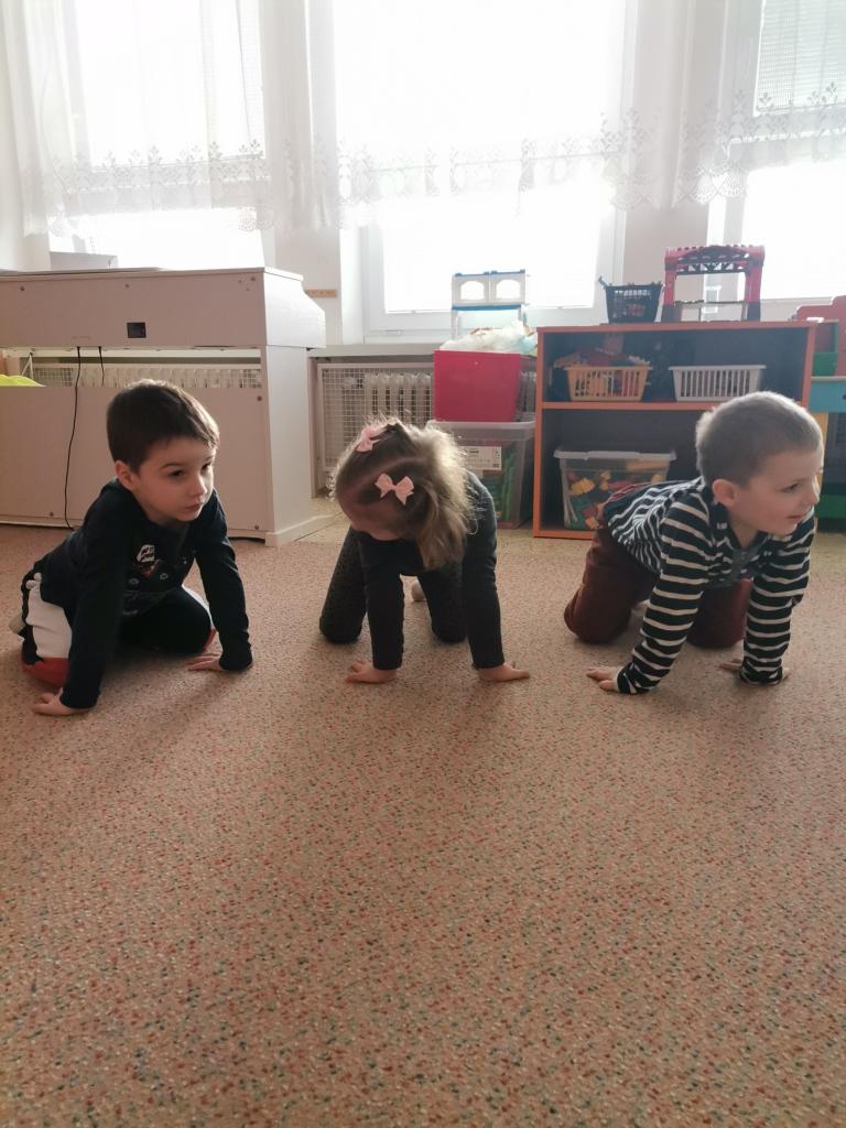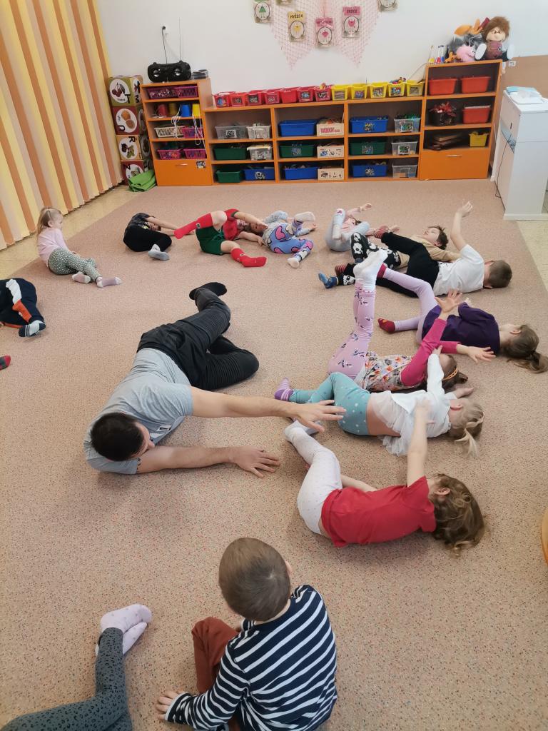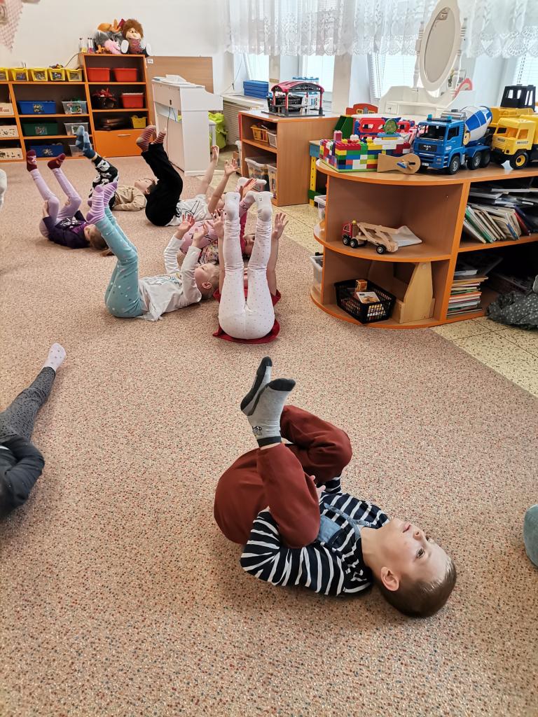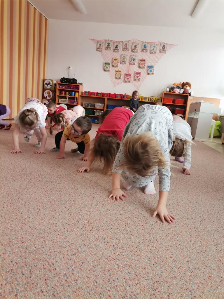 Dnešní fyzioterapeutické cvičení bylo ve znamení zvířátek - zahráli jsme si na broučky, opičky a berušky.