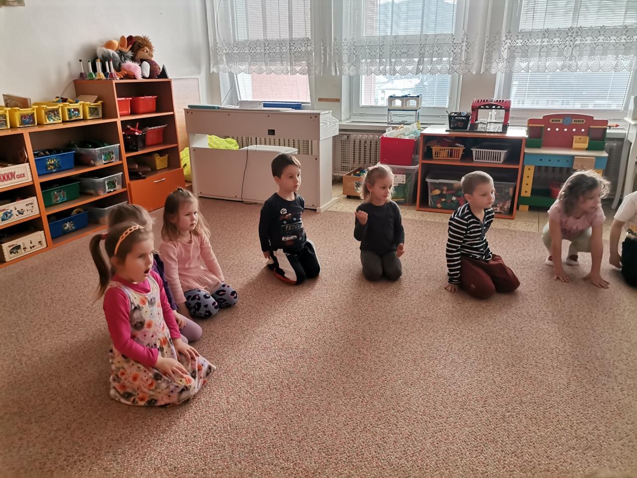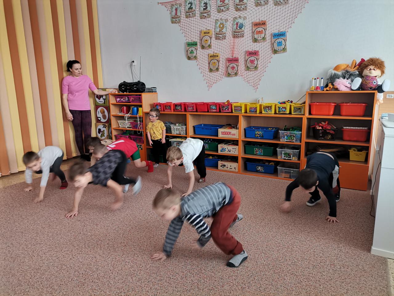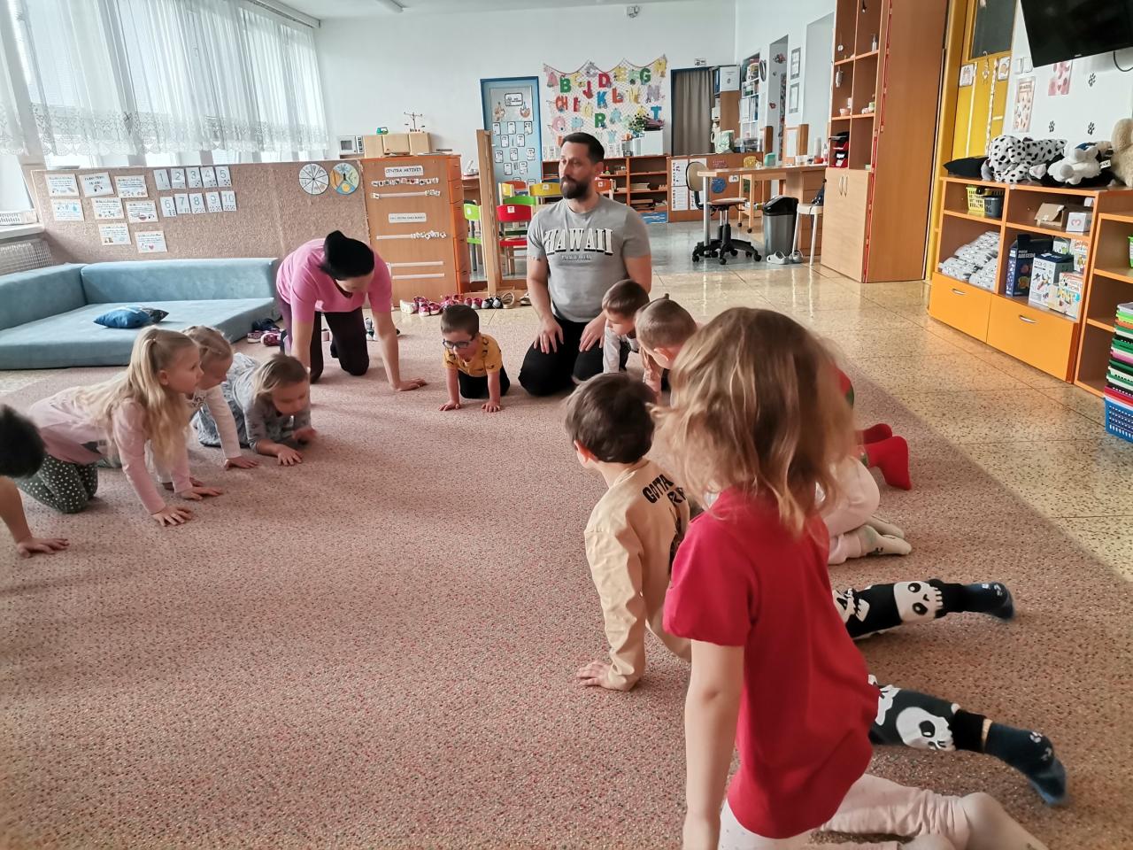 Dnešní fyzioterapeutické cvičení bylo ve znamení zvířátek - zahráli jsme si na broučky, opičky a berušky.