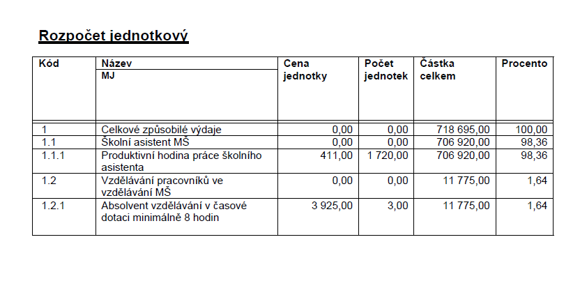 Rozpočet jednotkový :